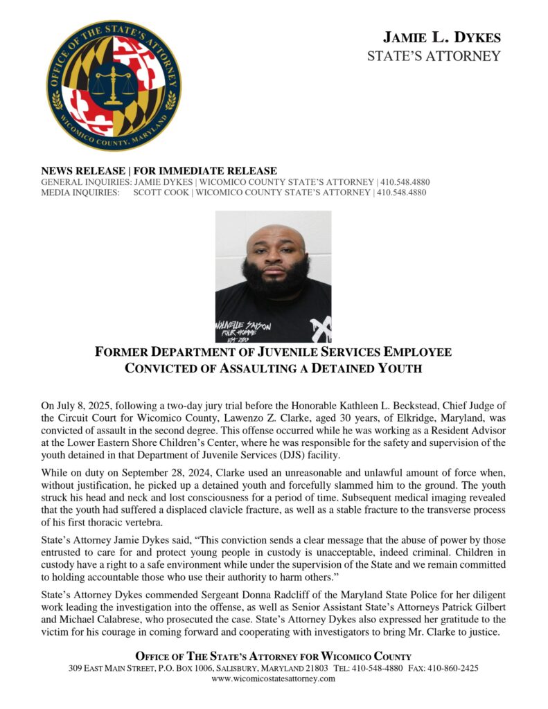 Former Department Of Juvenile Services Employee Convicted Of Assaulting A Detained Youth