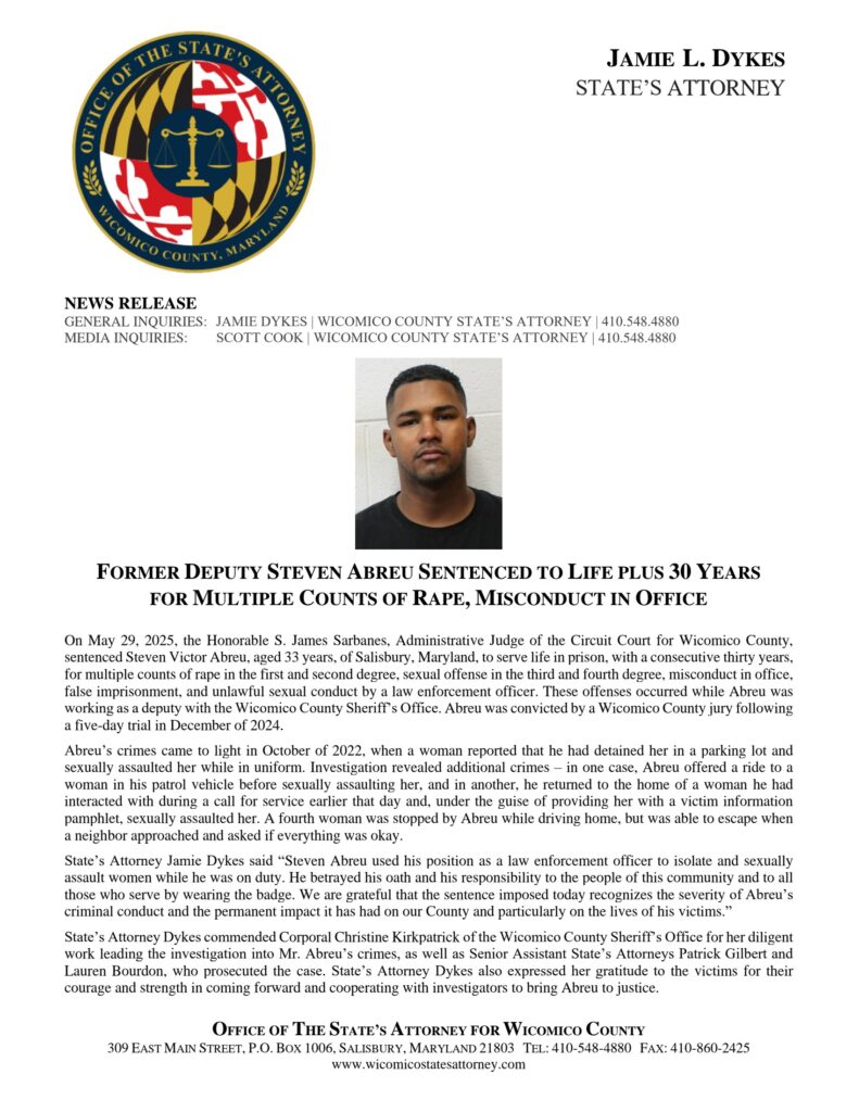 Former Deputy Steven Abreu Sentenced To Life Plus 20 Years For Multiple Counts Of Rape, Misconduct In Office