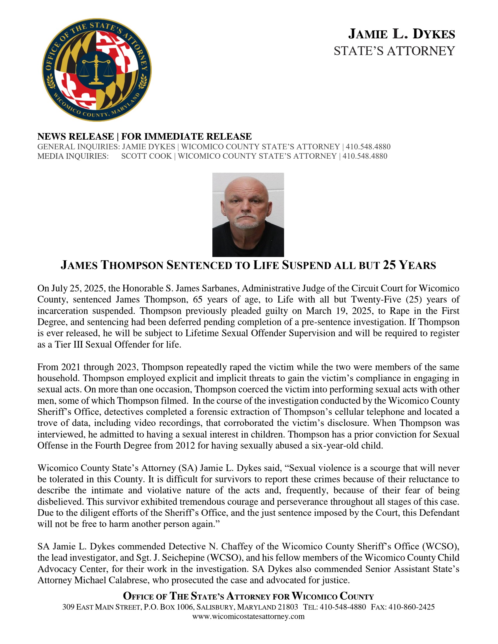 James Thompson Sentenced To Life Suspend All But 25 Years