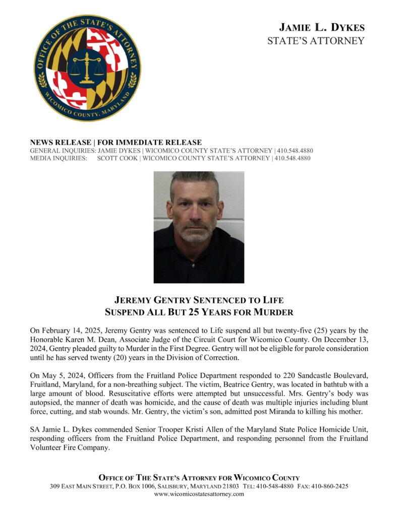 Jeremy Gentry Sentenced To Life Suspend All But 25 Years For Murder