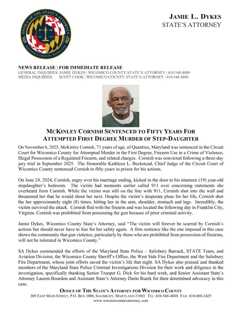 McKinley Cornish Sentenced To Fifty Years For Attempted First Degree Murder Of Step-Daughter