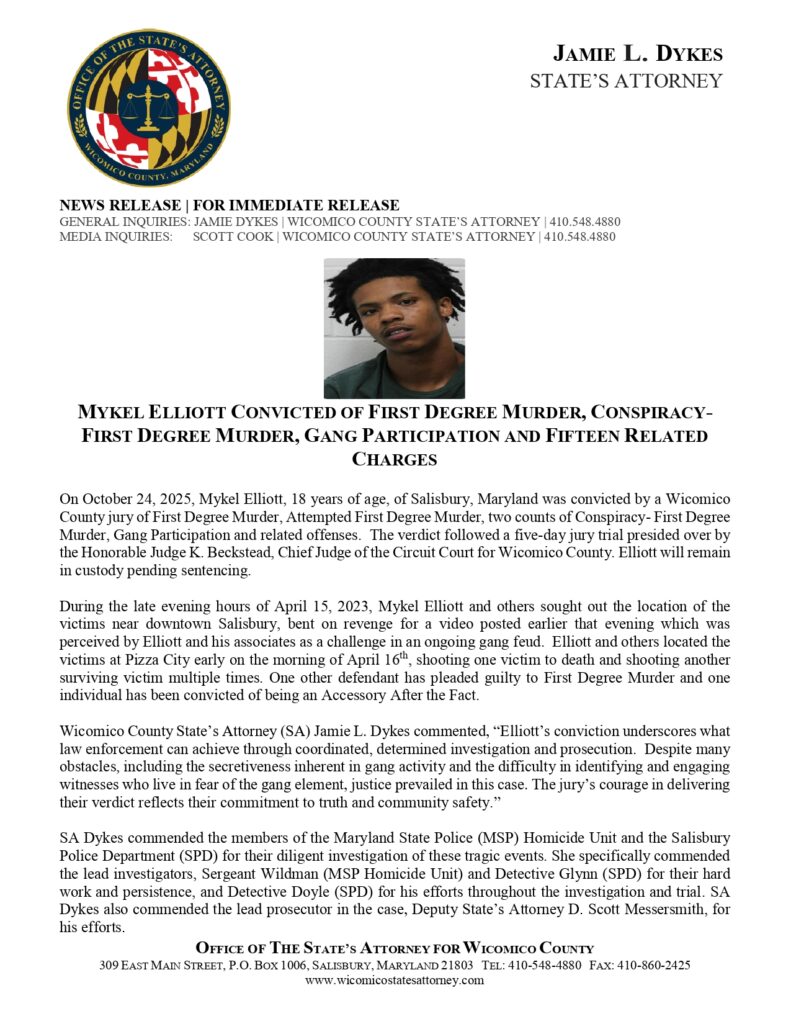 Mykel Elliott Convicted Of First Degree Murder, Conspiracy-First Degree Murder, Gang Participation And Fifteen Related Charges