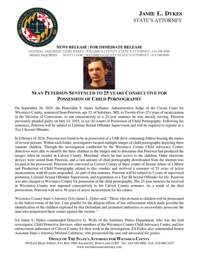 Sean Peterson Sentenced To 25 Years Consecutive For Possession Of Child Pornography
